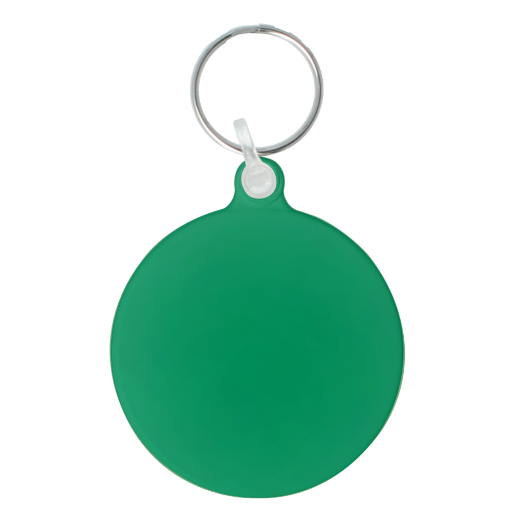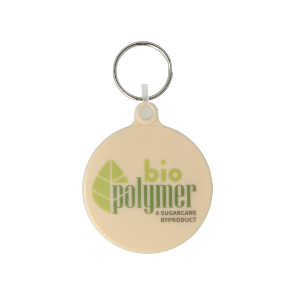 This larger format circular keyring offers increased branding space whilst maintaining the popular round design. Supplied with both split ring and jump ring fittings for secure attachment, the durable recycled plastic construction provides excellent promotional value.