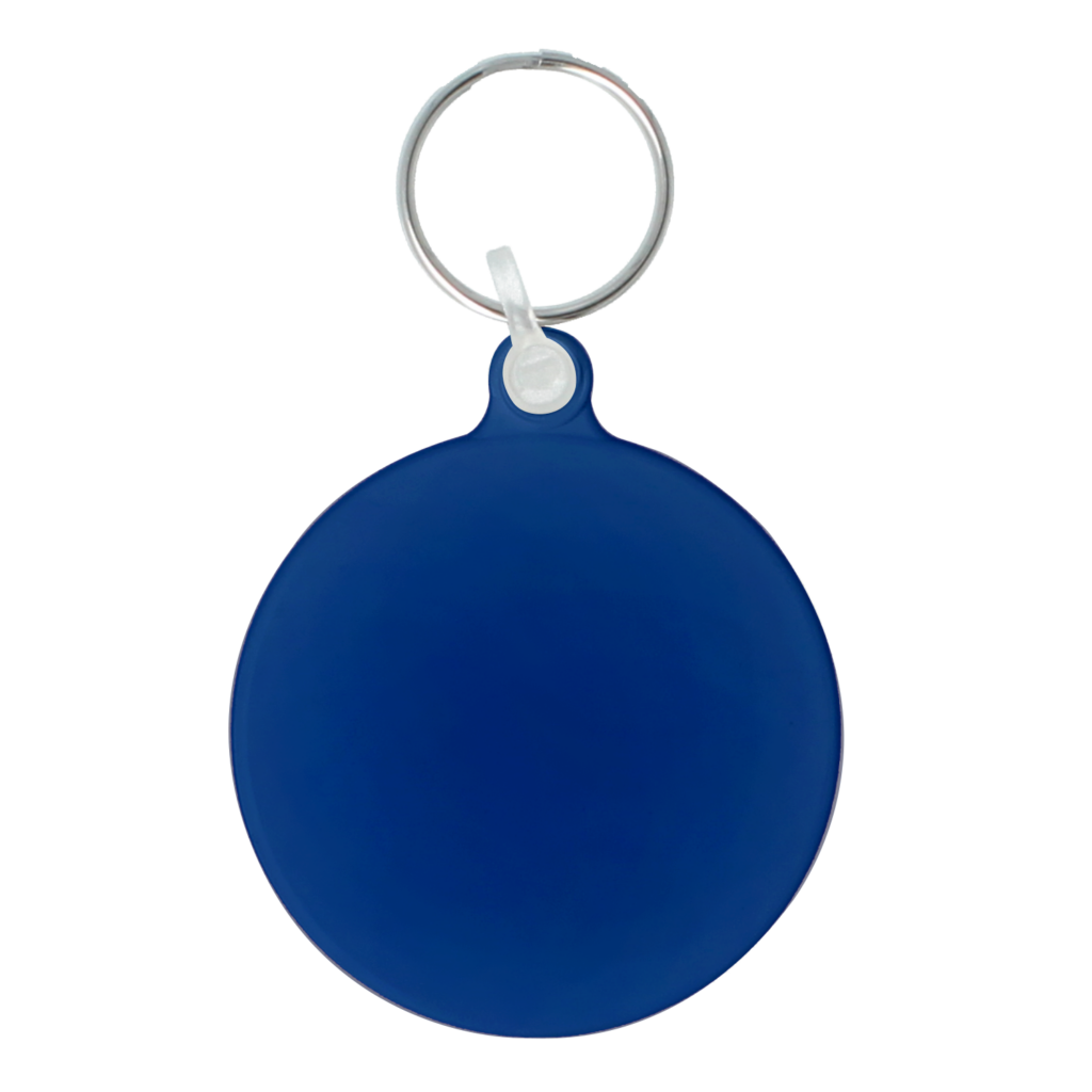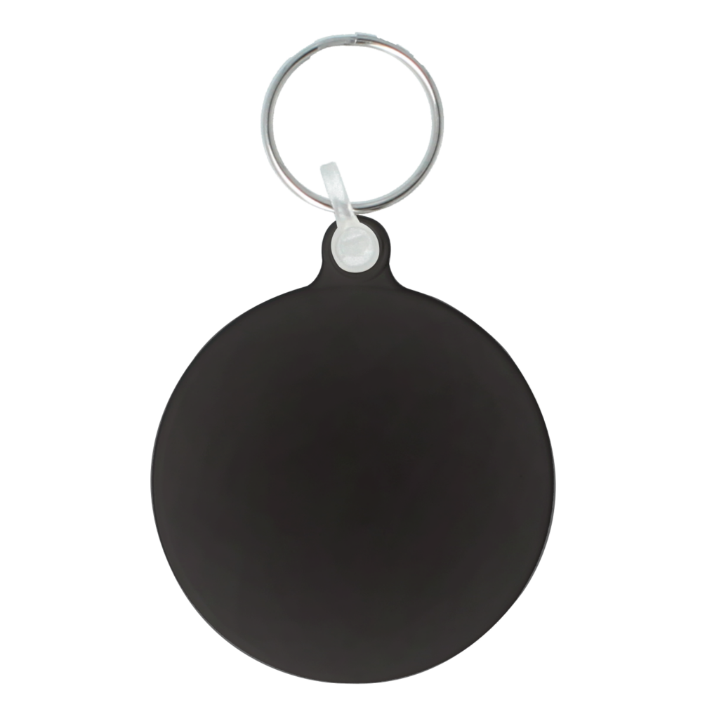 55mm round keyring made in the UK.