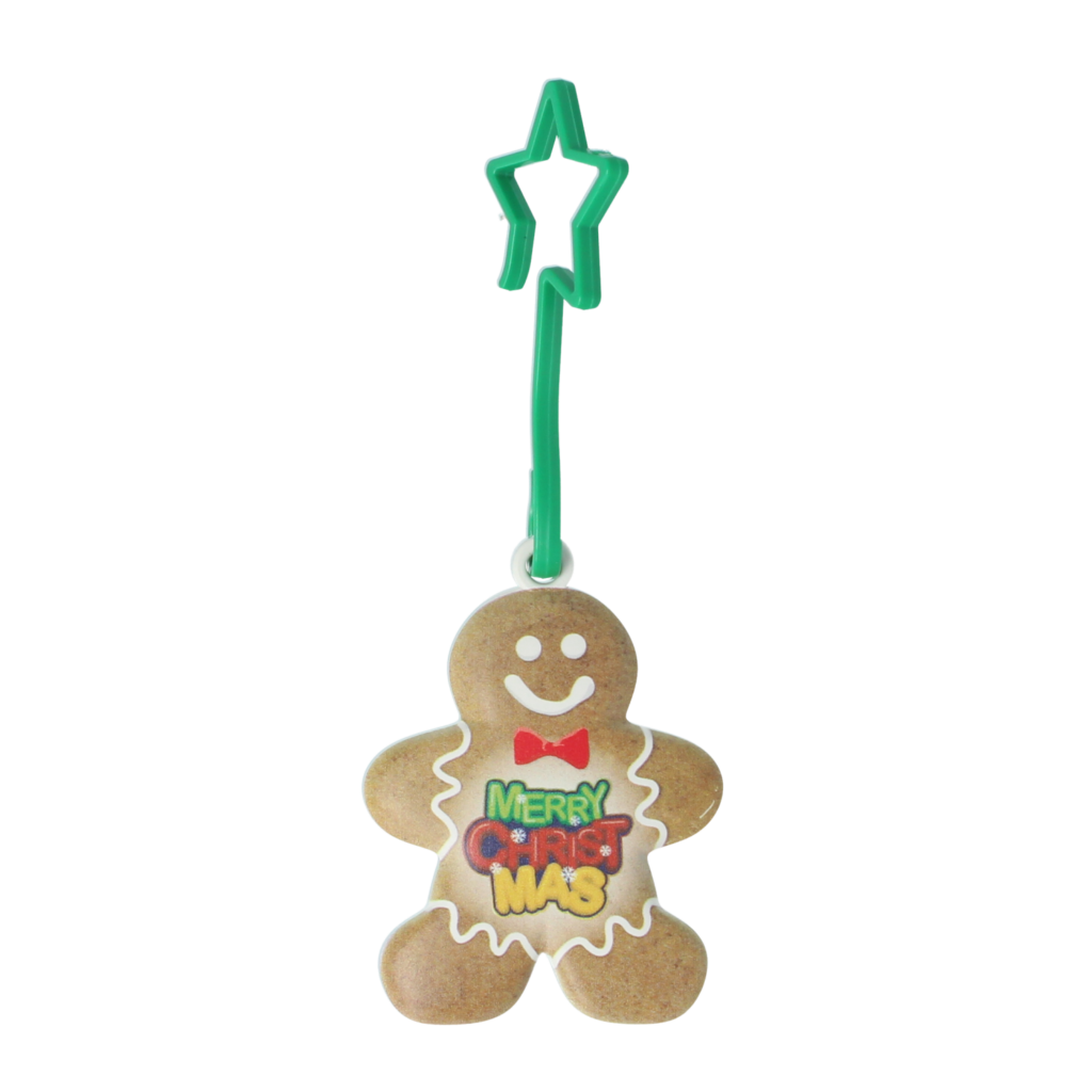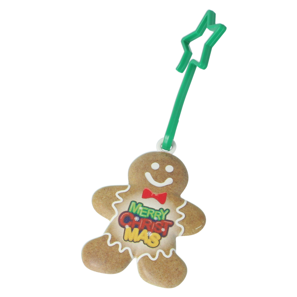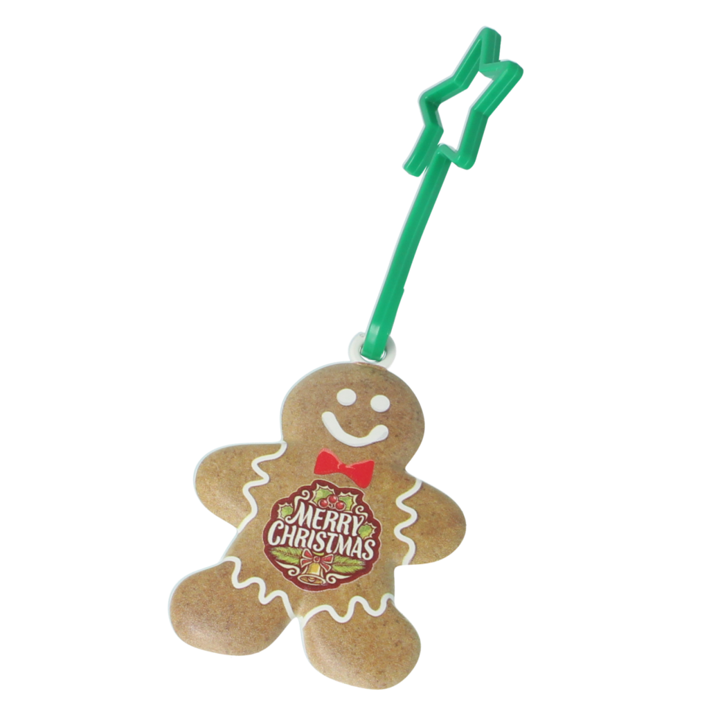 > 2.5D printed gingerbread man shaped decoration.