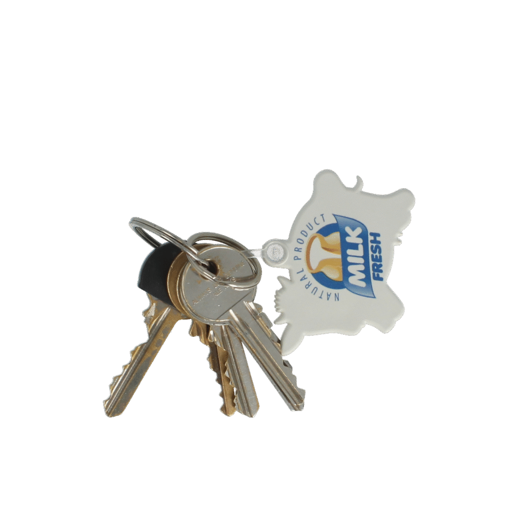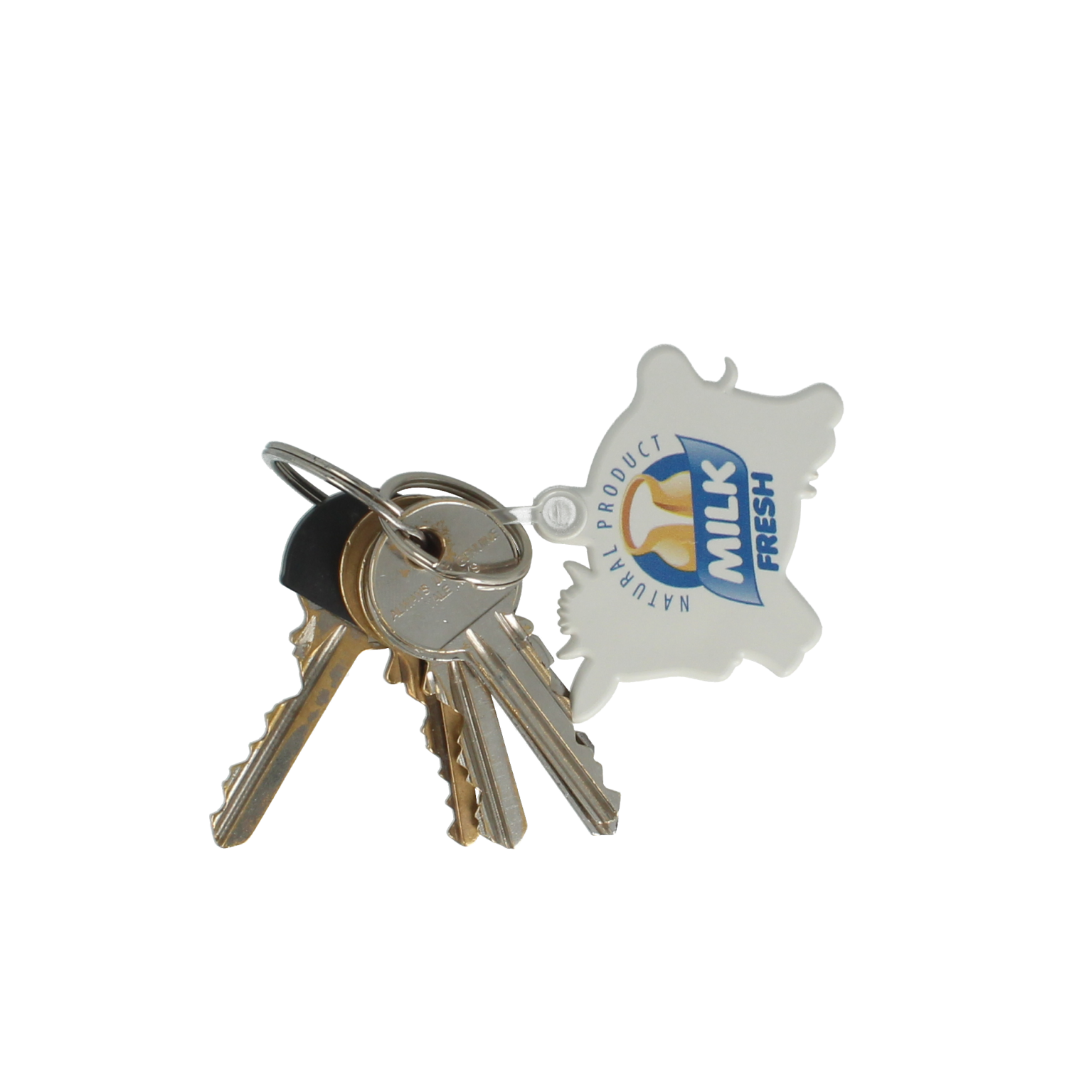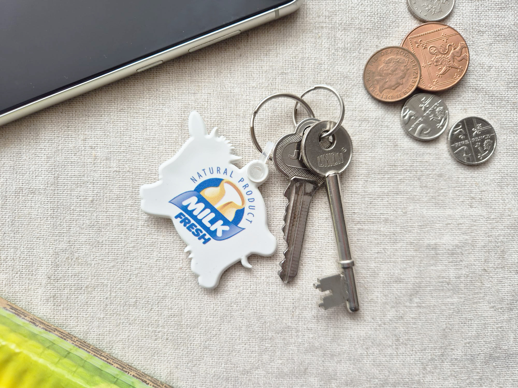 Our cow shaped ‘funkey’ keyring, made in the UK from recycled plastic or recycled R+ which has a speckled appearance.