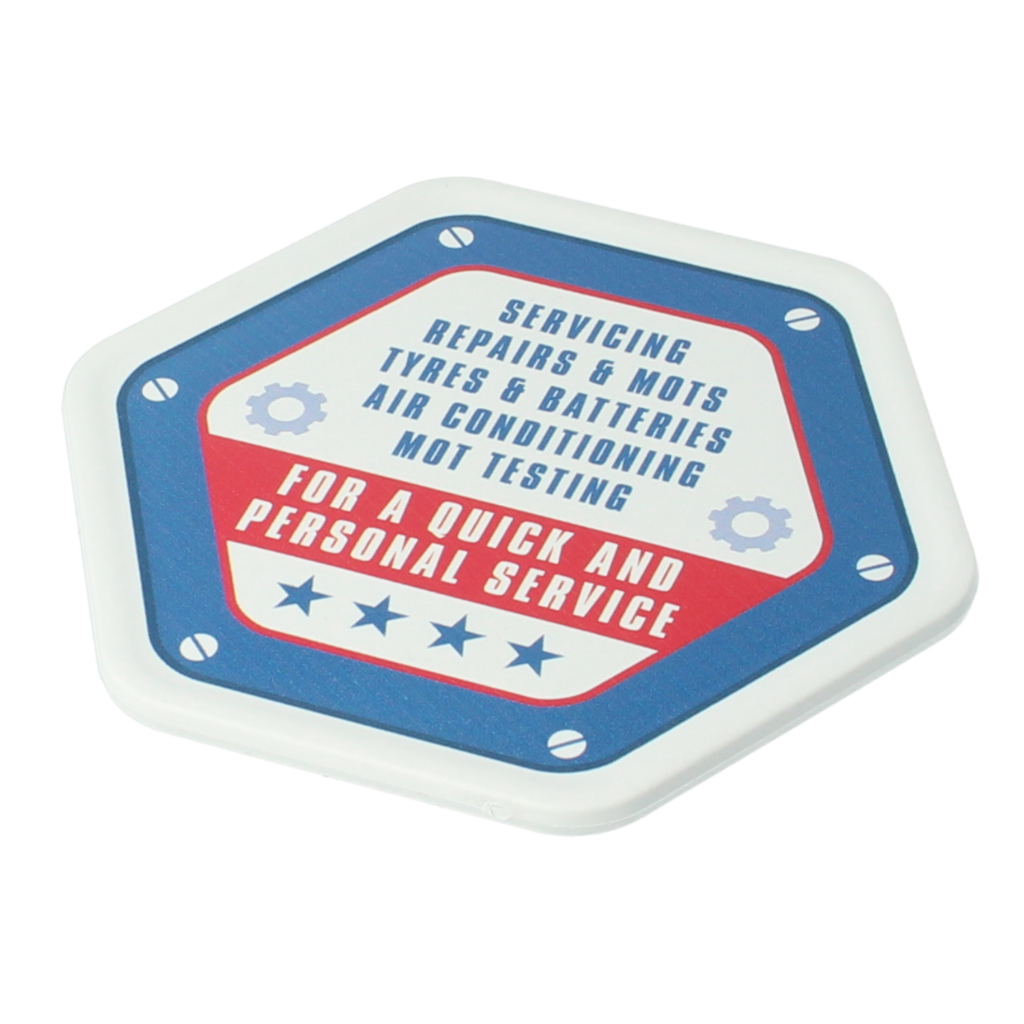 This fun hexagonal shaped coaster is durable, with a professional look due to its quality finish, and is ideal for daily use. Perfect for brands to have their logo always on show in offices, hospitality, car showrooms and garages. Made with the planet in mind, this product is environmentally friendly using only recycled plastic and is available in our standard colour range.