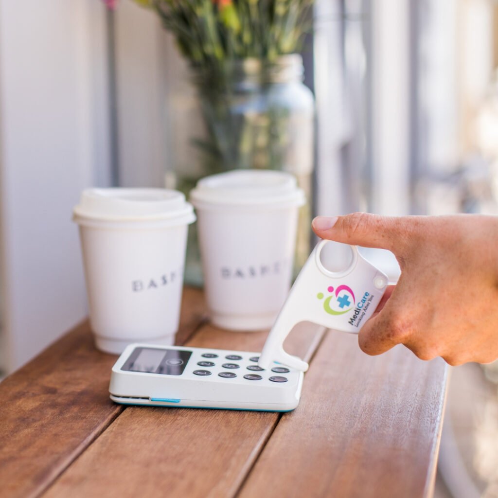 Compact design helps users avoid contact with commonly touched surfaces when out and about.