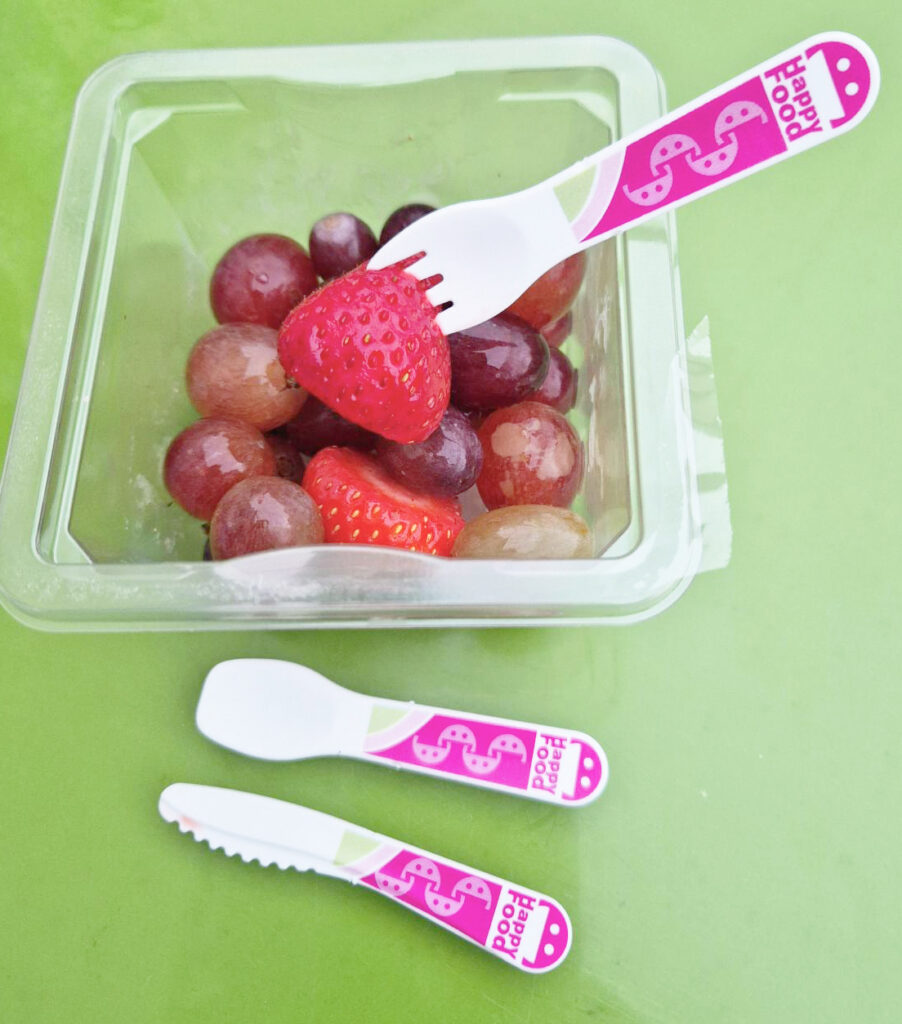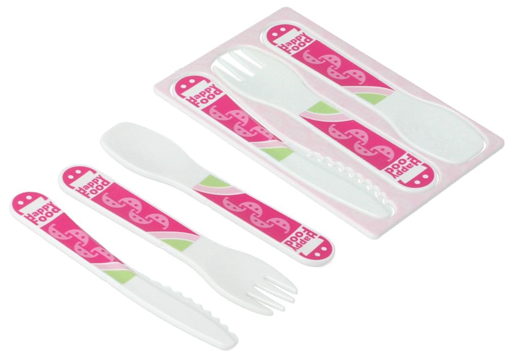 > Credit card pop-out mini cutlery set, UK-made from recycled plastic. Mini knife, fork and spoon