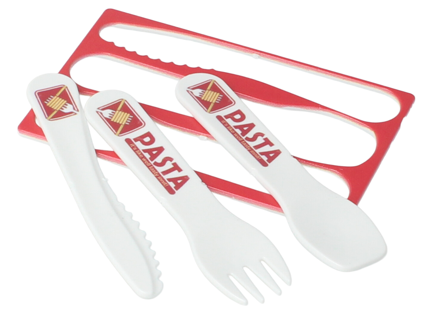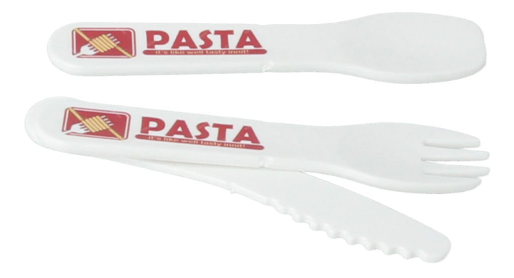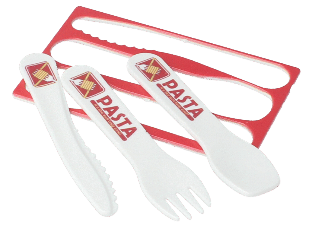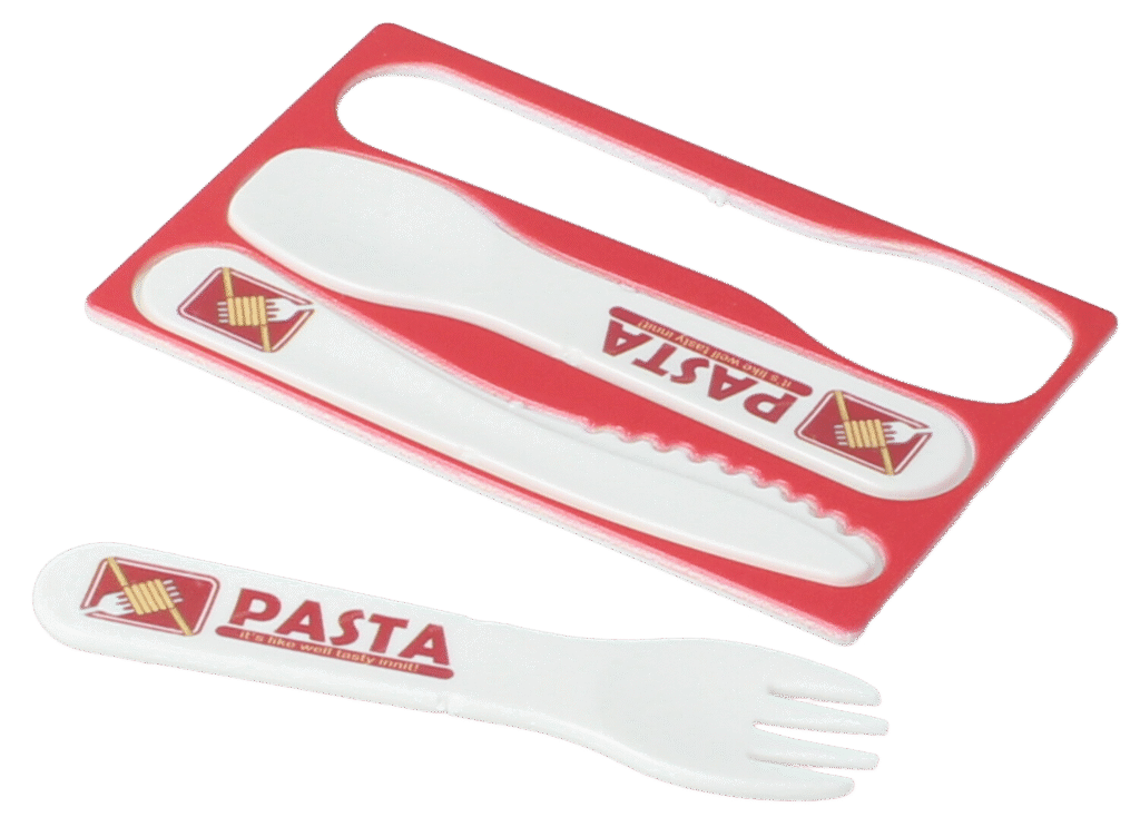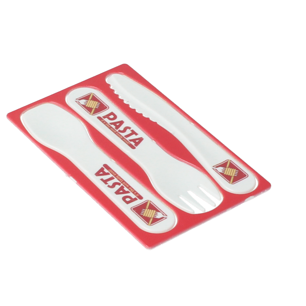The ultimate promotional gift idea for food festivals, corporate events, outdoor dining venues, and takeaway promotions. This innovative product combines a knife, fork and spoon in a sleek, compact design that fits perfectly in your wallet, bag, glove compartment or desk drawer for convenient portability. Using proper cutlery enhances the dining experience whilst showing consideration for the environment by reducing single-use plastic waste. The large branding area makes this cutlery set perfect for restaurant promotions, corporate hospitality gifts, food truck giveaways, and event merchandise.